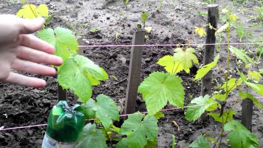 На 1-й год: верхушка саженца винограда обрезается. Считая от корня, оставляют два глазка для роста побегов. Всю остальную поросль нужно вырезать.