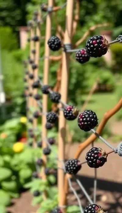 При установке шпалеры необходимо учитывать силу роста сорта ежевики. Для сортов с сильным ростом рекомендуется устанавливать опоры на расстоянии 30-40 см друг от друга. Высота шпалеры должна быть не менее 1,8-2 метров. Проволоку натягивают в несколько рядов, на расстоянии 30-40 см друг от друга. Это позволит равномерно распределить побеги по шпалере и обеспечить хорошую освещенность всех частей куста.