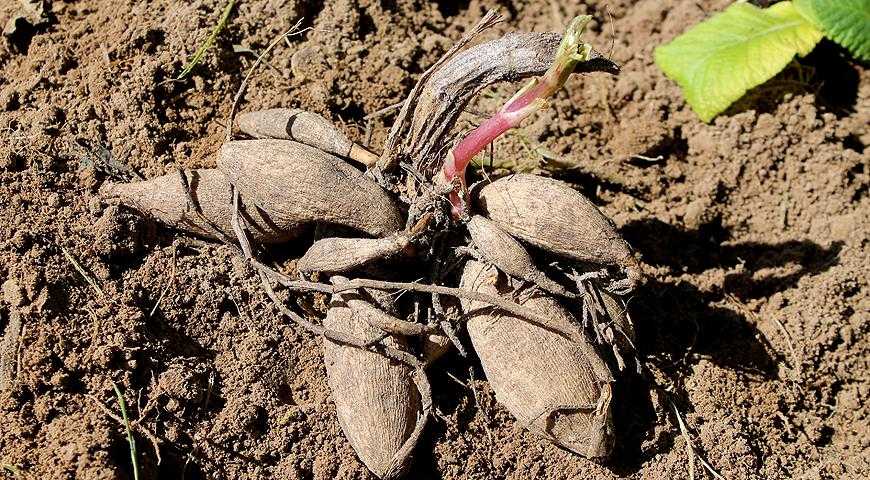 С приходом холодов клубни необходимо доставать из земли. В конце лета нужно прекратить полив и подкормки. В конце августа основания стеблей необходимо окучивать на 15-18 см.