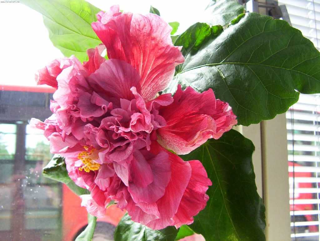 Считается самым распространенным видом и больше других похож на китайскую розу. Сочный цвет зеленой массы невероятно сочетается с красными большими цветками. Благодаря окраске смотрится эффектно.