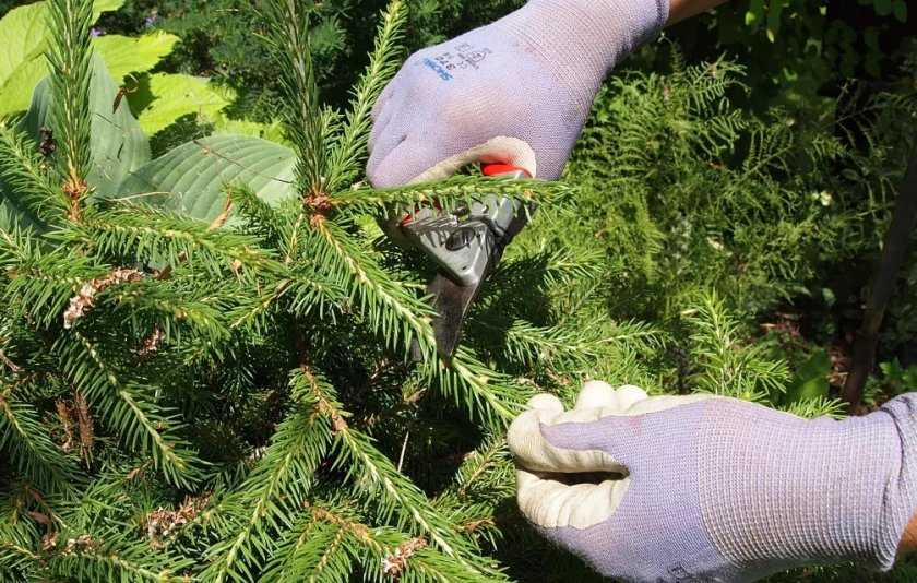 Важно! Обрезка ослабляет ель, поэтому не рекомендуется укорачивать побеги перед наступлением морозов.