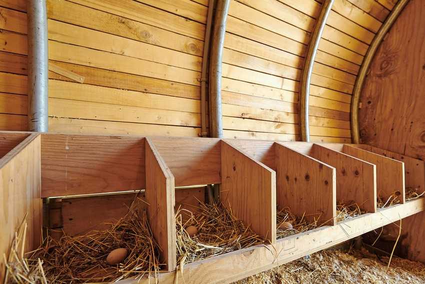 Предварительно их обновляют, очищают от грязи, дезинфицируют, меняют подстилку. Будущие несушки должны заранее освоить места для кладки.
