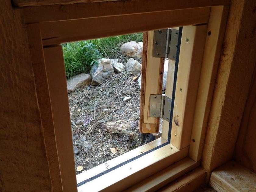 Элементарная система вентиляции подразумевает проветривание открыванием окон и двери. Главная задача — расположить проёмы окон так, чтобы птица не страдала от сквозняка. Лучше всего сделать несколько глухих окон (которые не открываются) и одно небольшое слуховое окно с регулируемой створкой, что позволит регулировать интенсивность подачи воздуха. Суть метода состоит в том, что кислород поступает через дверь в курятник, а углекислый газ вместе с аммиачными парами выводится через окно. Эту методику допустимо использовать только для небольшого поголовья (до 15 голов), содержащегося в малогабаритном помещении.