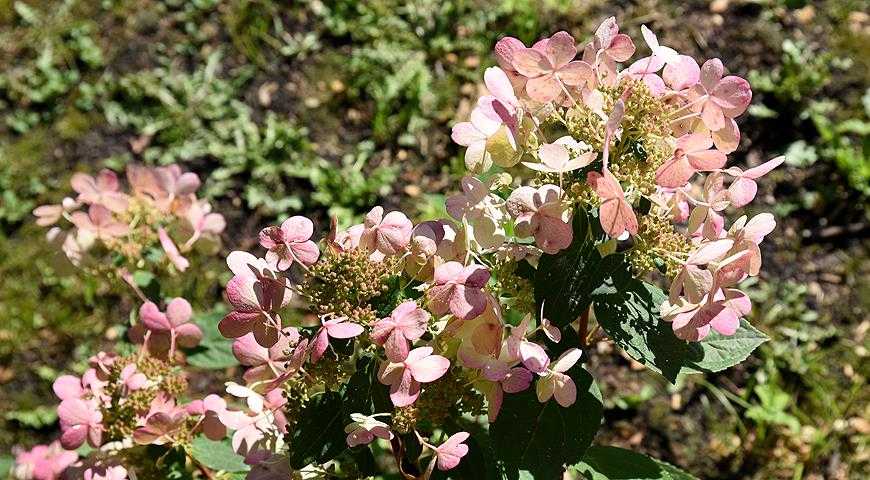Важно! У гортензии метельчатой цветы белой или бледно-бежевой окраски, которые постепенно меняют цвет, становясь яркими. Наиболее популярные сорта: Фантом, Пинки Винки, Даймонд Руж, Ванилла Фрейз, Грандифлора. Наиболее популярные сорта: Фантом, Пинки Винки, Даймонд Руж, Ванилла Фрейз, Грандифлора