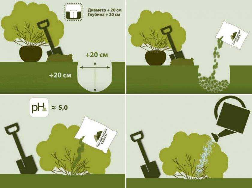 Необходимо позаботиться и о том, чтобы место посадки куста оставалось в основном безветренным. Рассматриваемый сорт предпочитает богатые почвы без избытка извести. При посадке надо добавлять перегной, торф, в глинистую среду — песок. Приствольный круг необходимо мульчировать торфом или опавшей хвоей. От переизбытка солей в почве кусты начинают желтеть или даже заболевать