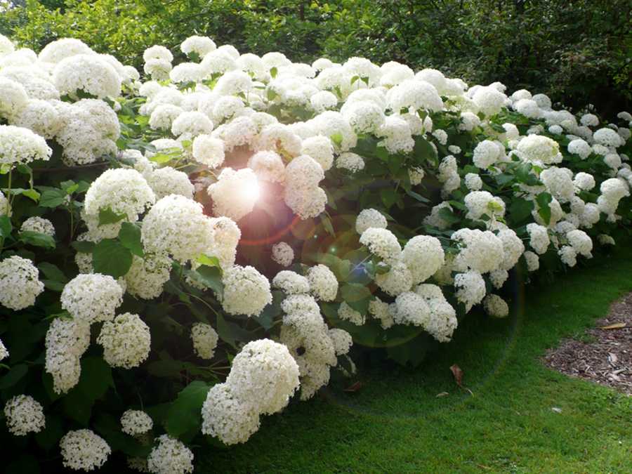 - Древовидная разновидность была выведена в Северной Америке. Кусты достигают трех метров в высоту. Шаровидные соцветия, как правило, окрашены в кремовый или белый цвет. Каждый из них достигает 15 см в диаметре. Цветет растение с июня до конца сентября.
