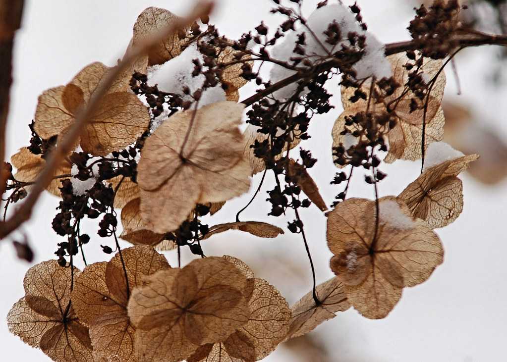 На зиму гортензии следует укрывать лапником и укрывным материалом. В оттепели открывать продухи для закаливания побегов.