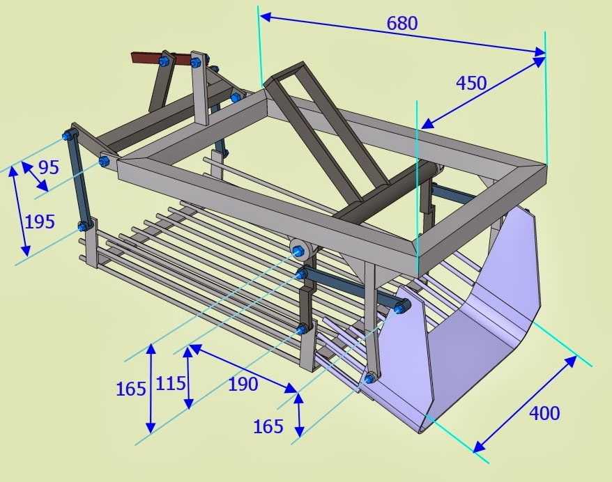 Работы по изготовлению несложные. Из того что требует специальных навыков, нужно только уметь работать со сваркой. Чертежи и размеры грохотной самодельной копалки могут отличаться в зависимости от модели мини-трактора МТЗ или мотоблока. Для последнего следует делать такое устройство, которое не будет мешать управлению. Не стоит забывать о весе — управление громоздким механизмом будет сильно утомлять.
