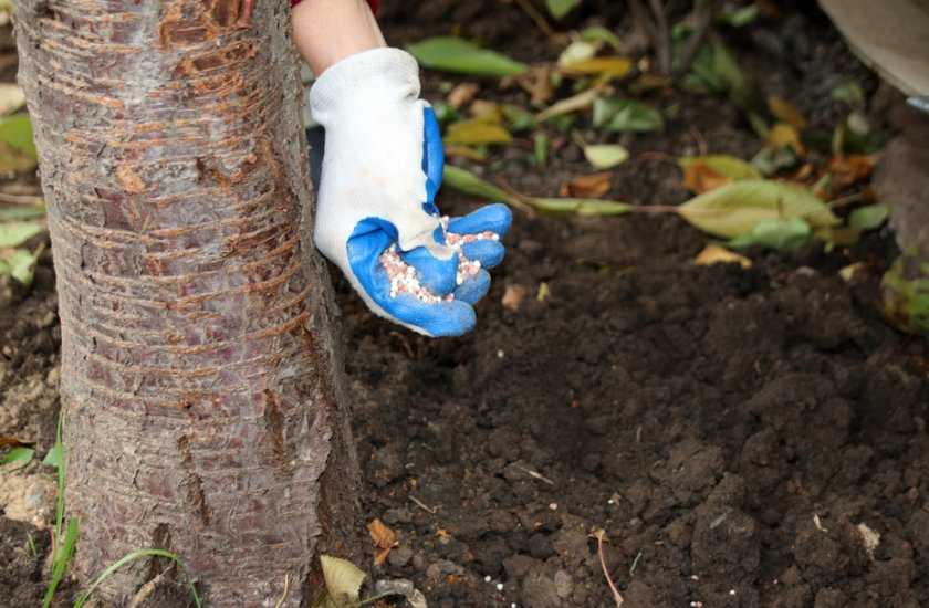 Все вышеуказанные вещества вносят в зону приствольного круга, который формируется на расстоянии 60 см от ствола. Необходимо соблюдать именно такое расстояние, так как питательные вещества химической природы могут обжечь часть корневища, которое расположено в верхнем слое земли.