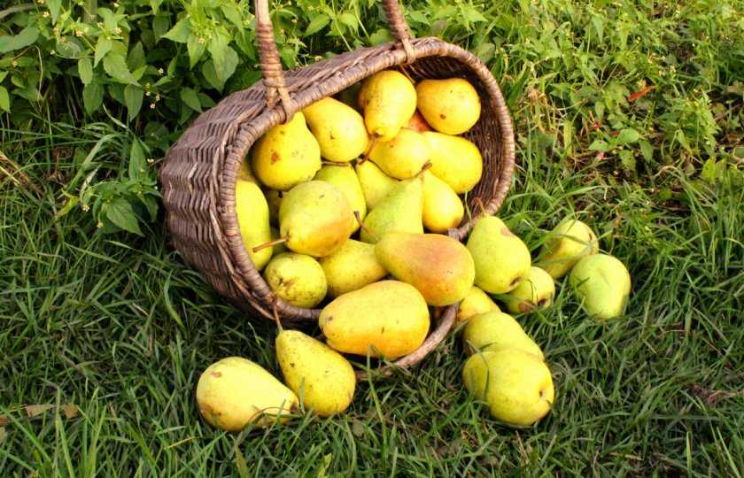 Если он оторвётся от ветки, то пора собирать урожай. Собранные груши хранят в корзинах, коробках или ящиках. Укладывайте их в один слой или два, но с переложением бумагой для предотвращения трения плодов друг о друга. Груши, повреждённые насекомыми, деформированные или ударенные, не складывают в ящики, а перерабатывают сразу же после сбора урожая.