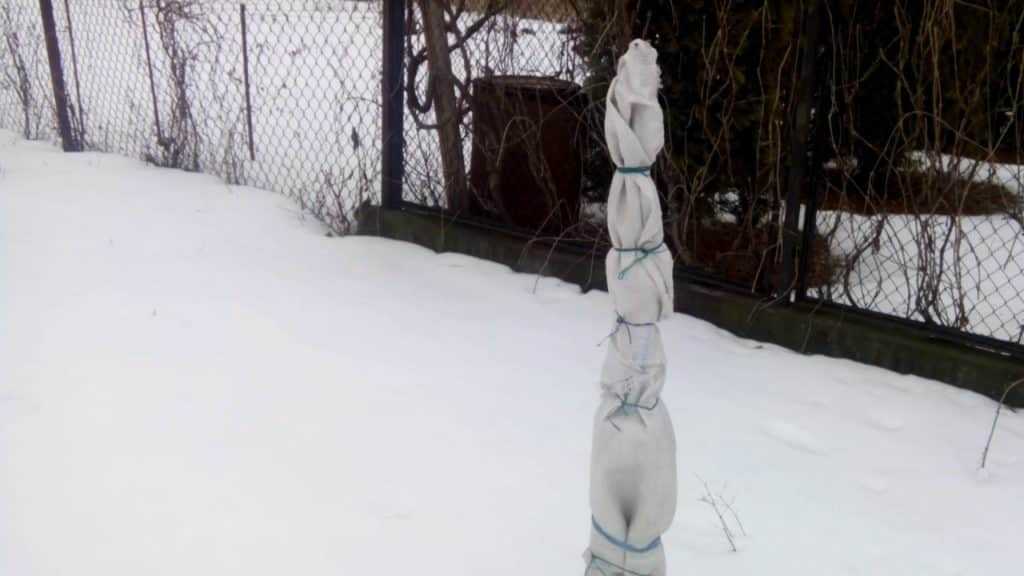 - Молодой саженец есть смысл защищать на зиму даже в южных регионах. Защита состоит в побелке стволика и обёртывании его бумагой, толем или нетканым материалом. От грызунов спасают привязанные еловые ветки или даже старые капроновые колготки. Подготовка к морозам для взрослых деревьев нужна только в регионах суровыми морозами. Она состоит в очистке и перекопке приствольного круга, побелке ствола и оснований скелетных ветвей известково-глиняным раствором с добавкой медного купороса, обёртывании ствола неткаными материалами, мульчировании приствольного круга. Зимой, если есть возможность наведываться в сад, под грушу можно набрасывать дополнительное количество снега с дорожек.