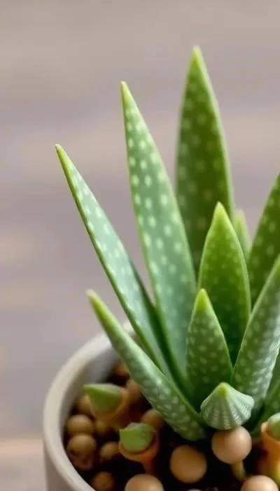 - Хавортия узелковая (Haworthia attenuata): Имеет короткие, толстые листья, покрытые белыми бугорками. Растет медленно, образуя плотные розетки.