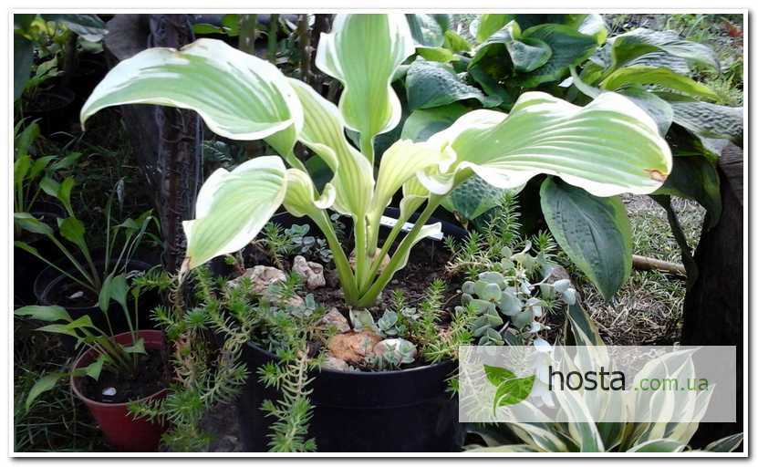 Т.е. выращивать хосты в горшках можно, но нужен постоянный контроль влажности и минимальное укрытие (или прикопка) на зиму. Верх горшка с хостой лучше накрыть пакетом (обычный пакет для мусора просто натянуть на горшок), чтобы растаявший снег не образовал в горшке ледяную лужу — от этого центральная почка может загнить и пропасть.