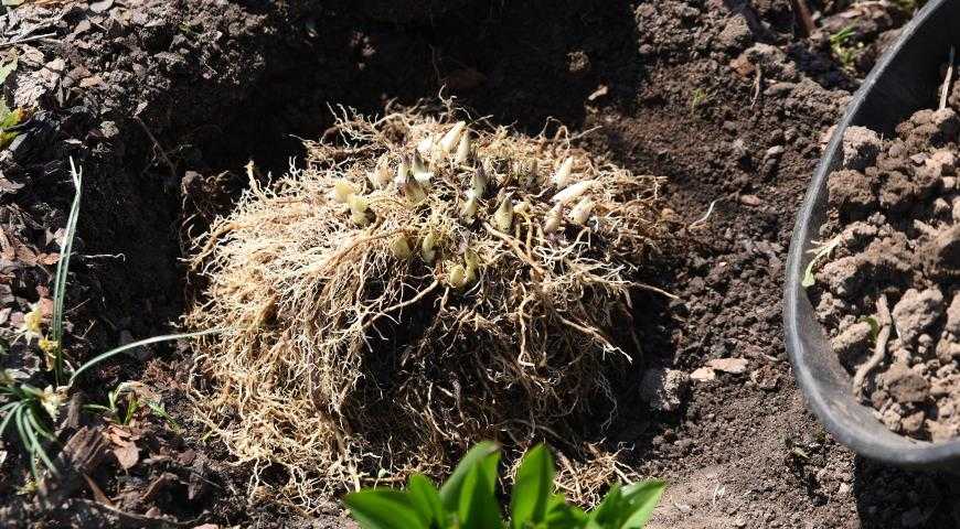 Отмойте землю с корней – это можно сделать просто водой из шланга. У вас окажется чистый маточный куст, который легко поделить на части без лишних повреждений.