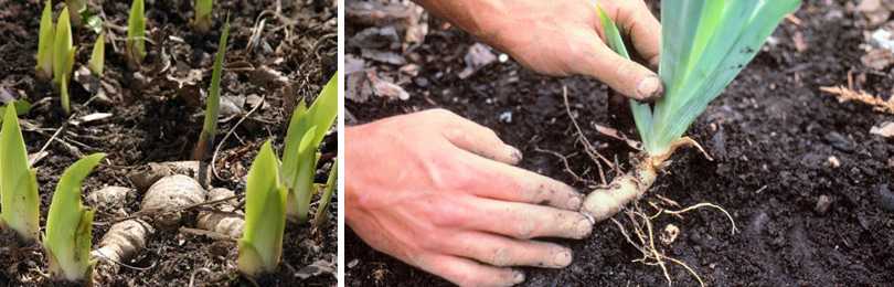 - Посадка. Не нужно заглублять корневища. Спинка должна находиться над поверхностью земли.