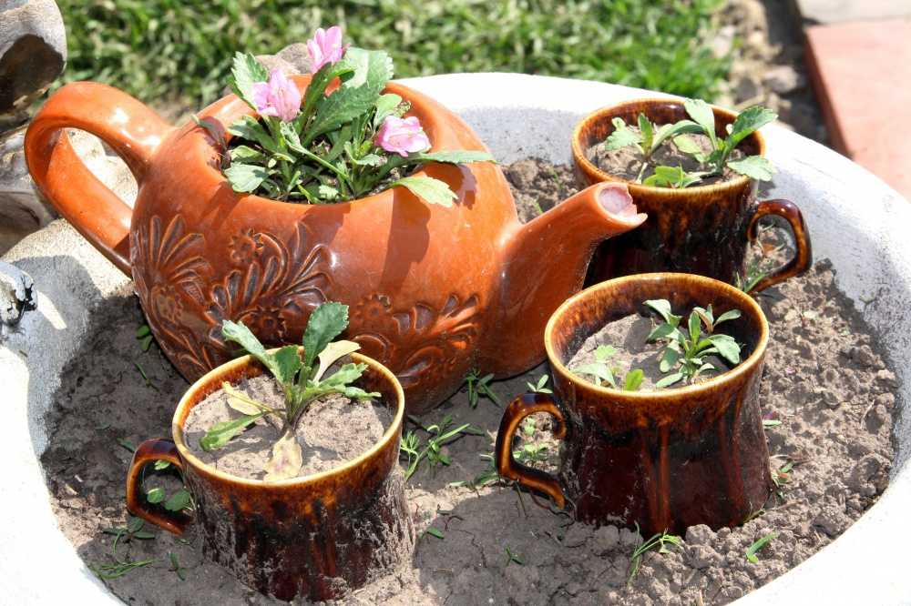 Благодаря таким оригинальным клумбам, вполне можно составлять целые композиции.