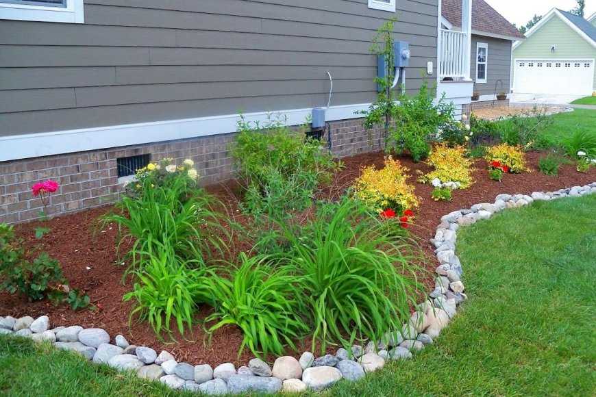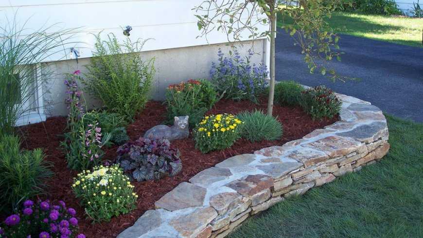 - Разбить клумбу, продумать ее ограждение (камень, дерево, бетон, пластик, земляная канавка, отделяющая цветник от газона).