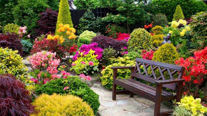 Разнообразие цветовой палитры на вашем участке непременно необходимо разбавлять зелеными растениями. Например, вечнозелеными кустарниками среднего роста.