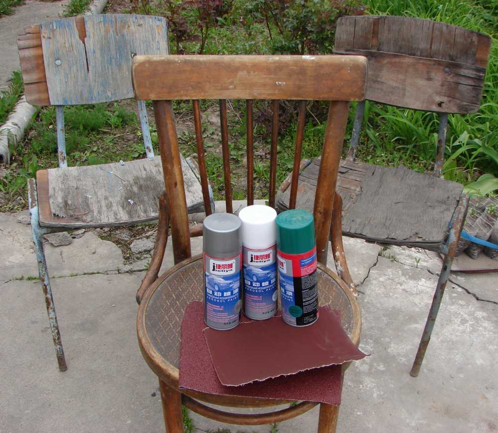 Очистите стулья от грязи и пыли, после чего покрасьте. Вполне очевидно, что этим лучше заниматься на улице, ведь в токсичности краски сомневаться не приходится.