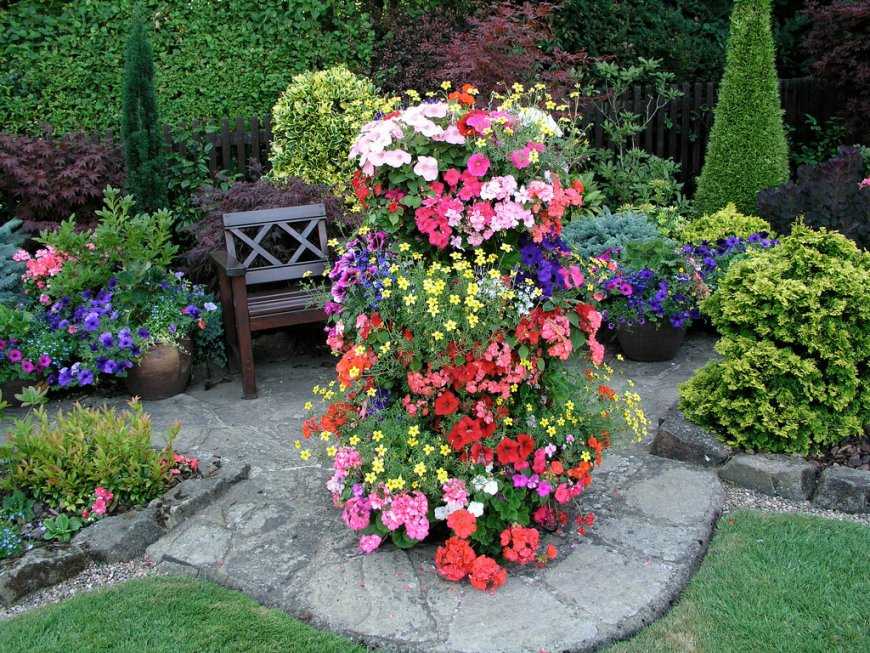 Клумба из многолетников бывает отдельным декоративным элементом или встроенным. Цветником можно окружить беседку, кустарник или дерево.