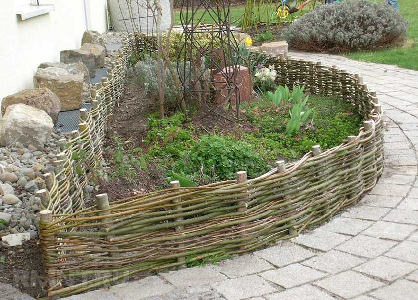 Клумба лучше смотрится, если ее края будут приподняты над землей. А чтобы они не осыпались, их удерживают ограждением из камня, кирпича, ивовых плетенок. Последний шаг – высадка цветов и их полив.