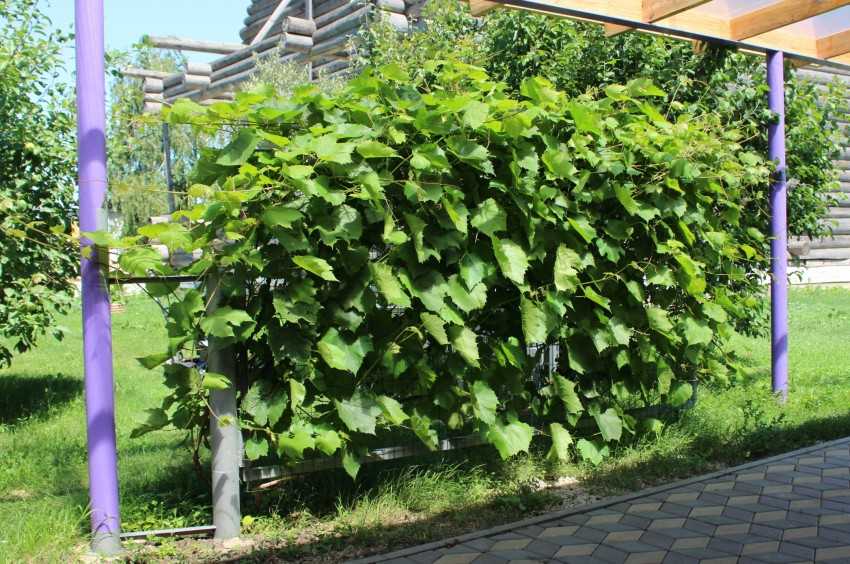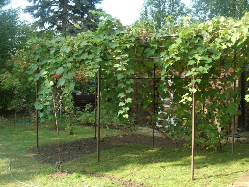 - Виноград – это лиана, он не растет самостоятельно вверх и использует в качестве опоры любые конструкции, расположенные рядом. Чтобы он не оплел здания или соседние деревья, нужно соорудить шпалеру или перголу, на которой он и будет расти.
