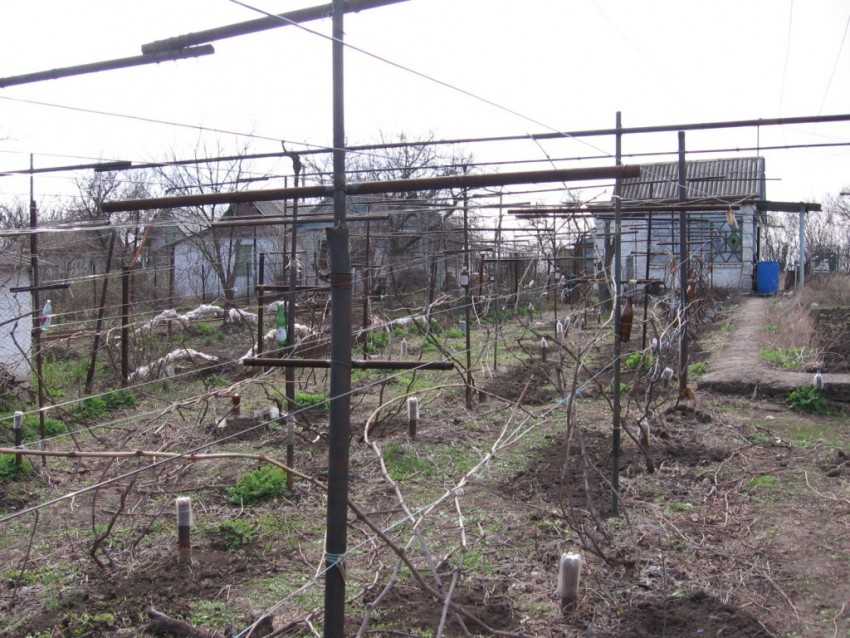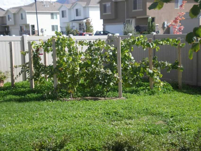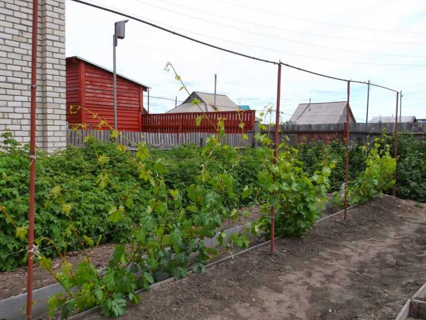 В противном случае, достаточно длинной металлической штанги. Учтите, что при таком способе выращивания на зиму виноград придется с нее снимать. Для выращивания сильных взрослых кустов этот метод не подходит. Так же он не рекомендуется для только посаженных кустов, потому что они будут плохо проветриваться, увеличится возможность грибковых заболеваний.