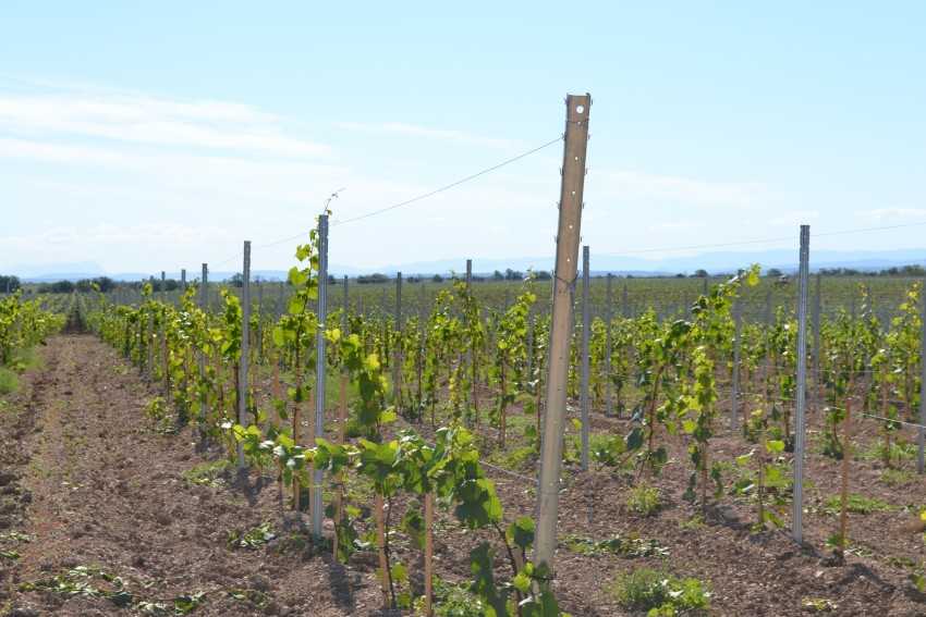 В год высадки виноград подвязывают вертикально, чтобы побег вырос максимально длинным