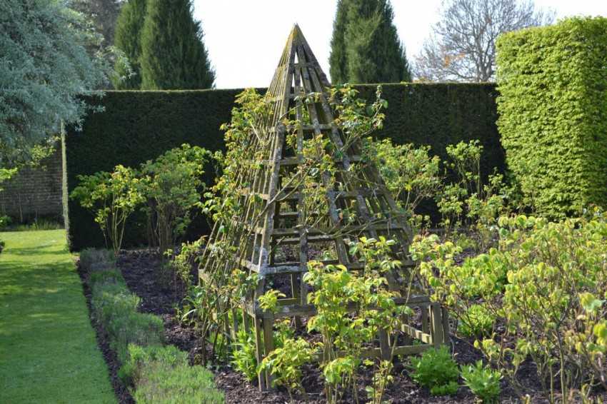 Используя древесину в качестве опорной несущей одноплоскостной конструкции, выбирайте дерево твёрдых пород: дуб, граб, бук и т.д. диаметром 100-120 мм. Подойдёт и профилированный брус 15х15 см, и круглое бревно, очищенное от коры. Для двухплоскостной шпалеры дерево использовать не рекомендуется. Срок службы дерева – минимум 7 лет.