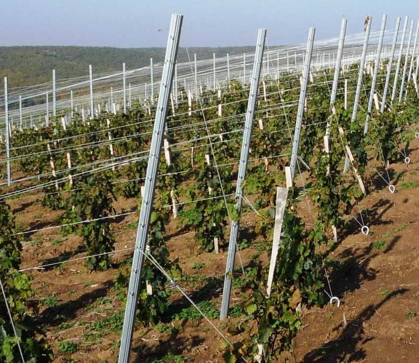 Есть множество видов двухплоскостных шпалер для винограда, но самые распространённые – V-образные, Y-образные, Т-образные и прямые параллельные П-образные. Сложные опоры делают на заказ по своим чертежам и расчётам. Применяются такие конструкции для сильнорослых морозостойких сортов винограда.
