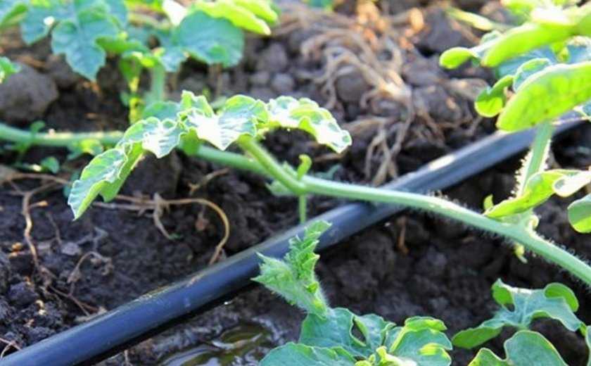 При выращивании бахчи в открытом грунте важно организовать соответствующую систему мелиорации, чтобы обеспечить достаточное увлажнение почвы, исключая попадание капель на листовые пластины и плоды. Бахчеводы рекомендуют при высадке семян формировать небольшой земляной бугорок, вокруг которого сооружается углубление, предназначенное для полива дынного куста
