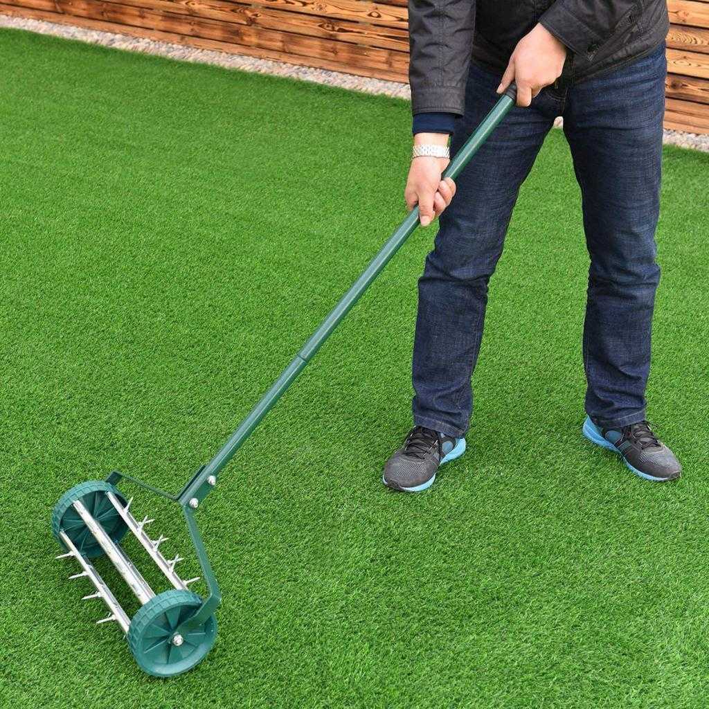 Иногда травяной покров теряет свою привлекательность, становится тусклым, быстро желтеет. Это может быть связано с тем, что он накапливает прослойку «органического мусора» — мха, отмершей или скошенной травы. Она не дает газону «дышать», нарушается природная аэрация, а также ограничивается поступление влаги и питательных веществ к корням растений. Чтобы избежать этого, периодически прокалывайте дерн по всему периметру с помощью механических или автоматических аэраторов. После такой процедуры газон нужно хорошо полить.