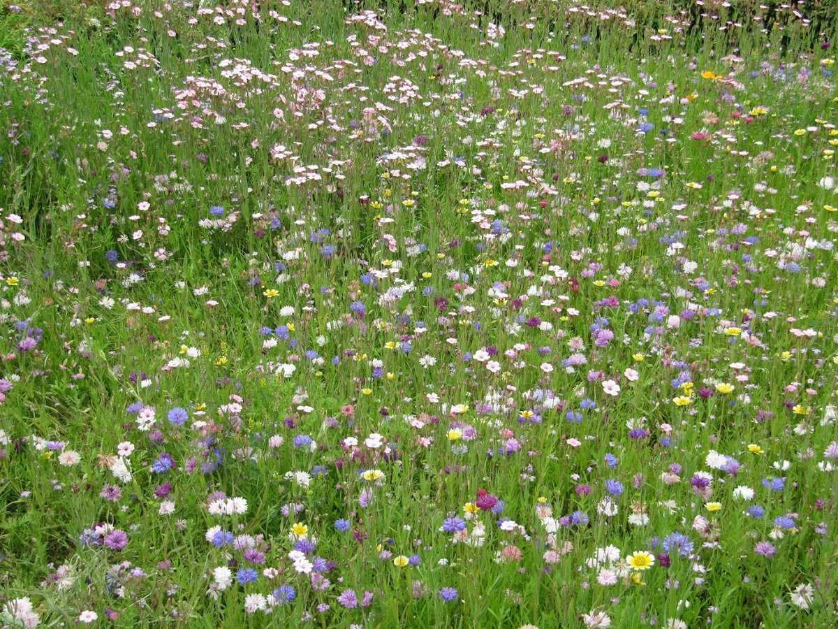 Мавританский газон. Самая красочная и живописная разновидность, потому что она включает не только травы (мятлик, полевица побегоносная и другие), но и цветы (васильки, маки, эшшольция, лен, немезия, календула, космея и др.). Визуально похожа на цветущую полянку. Такая разновидность не только красиво, но и полезна — она привлекает в сад пчел.