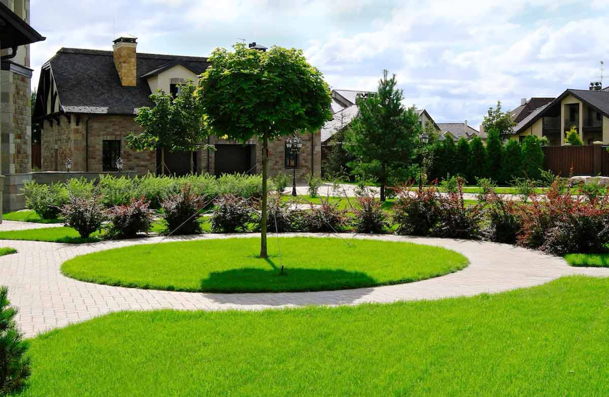 Яркий акцент падает как раз на зеленую часть ландшафта, то есть на газон или его отсутствие. Со вторым вариантом развития событий, какой бы ухоженной не была площадь, вся картина поплывет. Одна маленькая деталь меняет многое.