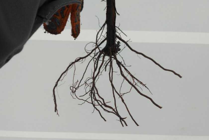 После проведения манипуляции, открытый участок обрабатывают древесной золой. В случае с покупкой саженцев с закрытым корнем, подрезка корней требуется очень редко. Обычно пересадку таких растения проводят перевалочным методом, сохраняя земляной ком.