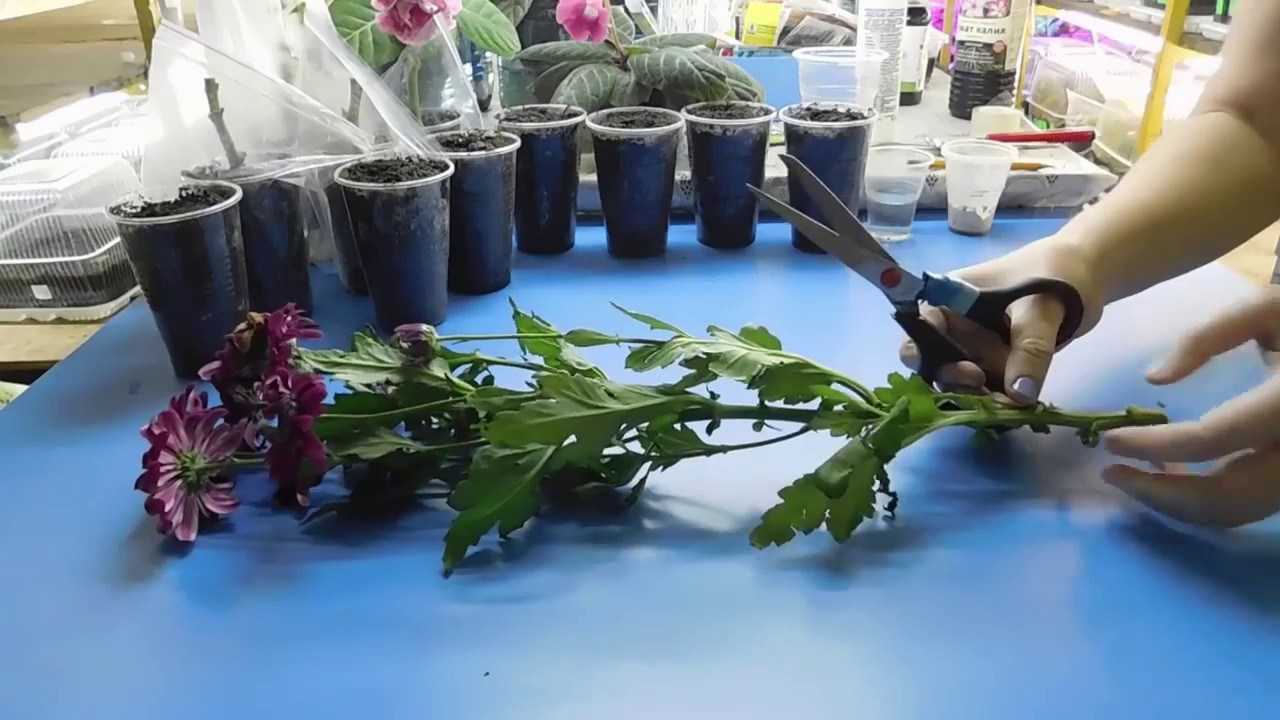 На видео цветовод показывает свой способ укоренения хризантем из букета.