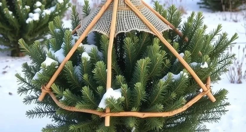 Каркас – это конструкция, которая предотвращает скопление снега на ветвях можжевельника.