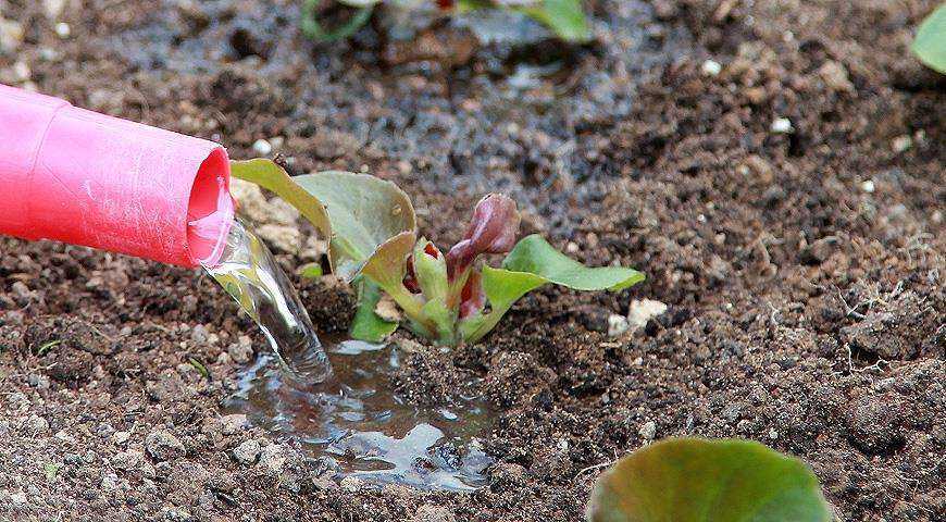 тщательно поливают грунт и оставляют на несколько минут, чтобы вода вся впиталась;