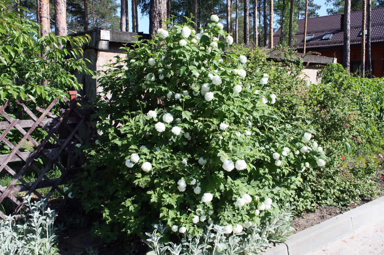 Цвести кустарник начинает обычно в конце мая и период цветения занимает приблизительно 20 дней. За это время кустарник разрастается и становится пышным, а снежно-белые соцветия формируют свою удивительную шарообразную форму.