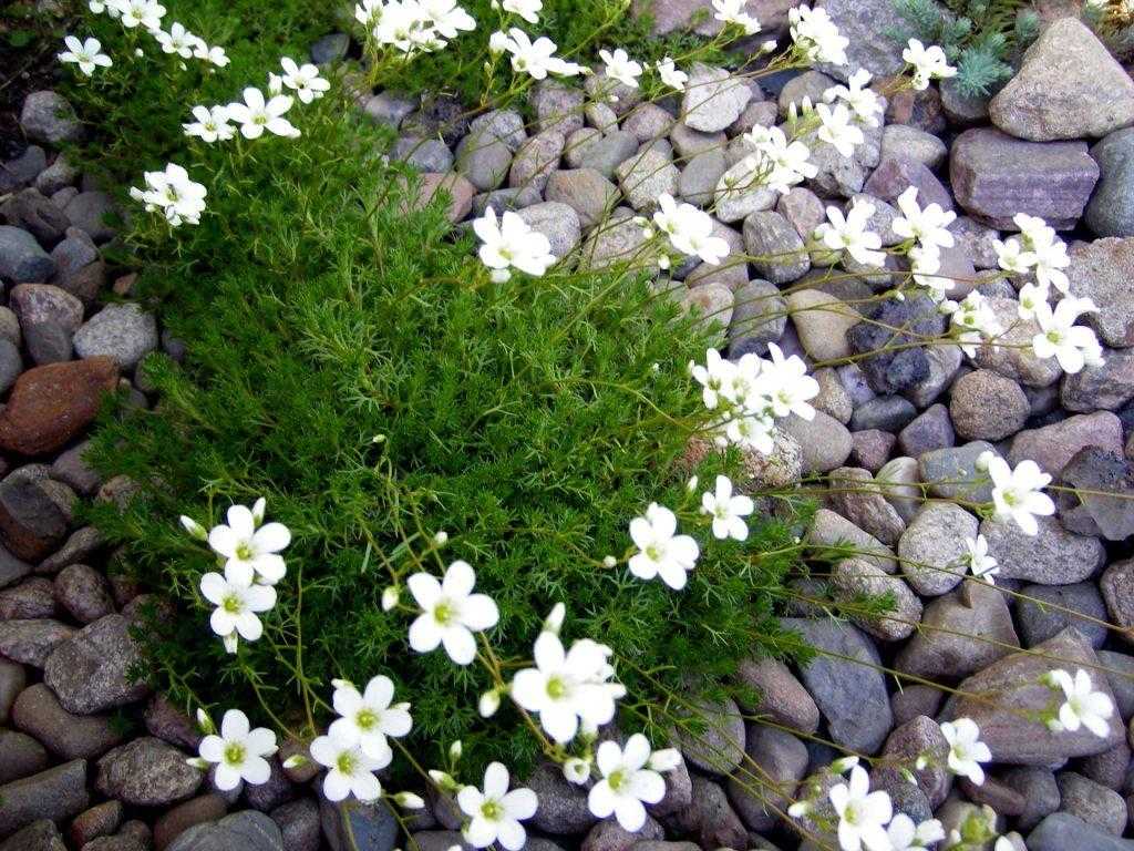 Его необходимо регулярно умеренно поливать и один раз в месяц подкармливать минеральными удобрениями. Почву вокруг камнеломок рыхлят и пропалывают.