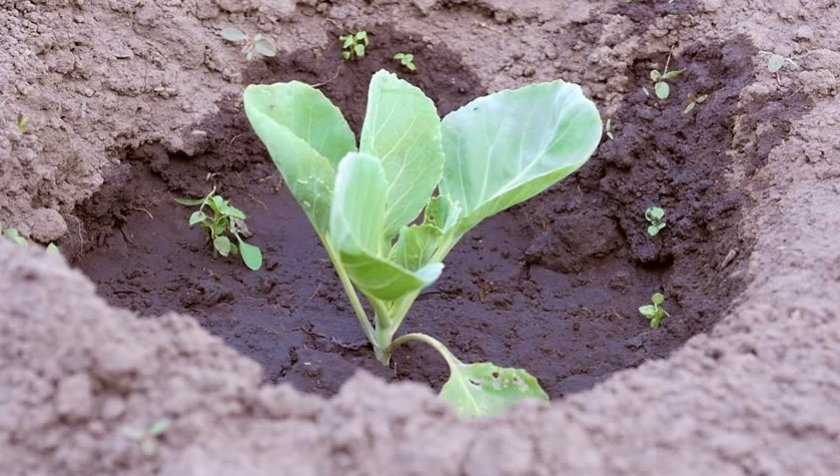 При высадке рассады капусты растения заглубляют в почву до первого настоящего листа