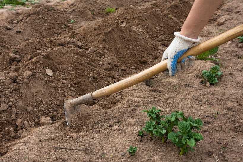 Кроме окучиваний после каждого увлажнения обязательно проводится рыхление. Процедура помогает разрушить образовавшуюся корку, которая мешает нормальному газообмену в корнях. Ещё одним полезным свойством рыхления является уничтожение сорняков.