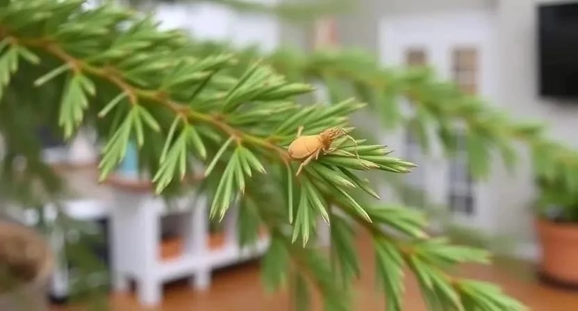 | Паутинный клещ | Пожелтение и опадание хвои, паутина на растении | Обработка инсектицидом |