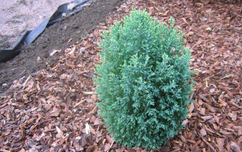 Перед посадкой участок вокруг кипарисовиков мульчируют корой, торфом или деревянной щепой, которые отлично справляются с функцией задерживания влаги — это позволяет контролировать частоту полива и делать это только когда просохнет верхний слой грунта.