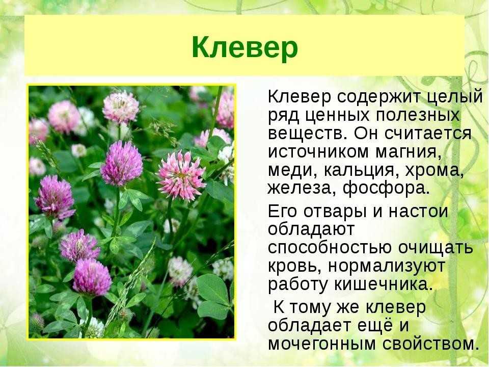 Не менее полезными лечебными свойствами обладает и луговой клевер: