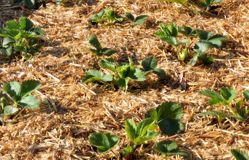 - После окончания посадочных мероприятий на грядки с клубникой выкладывают слой сухой травы или опилки.