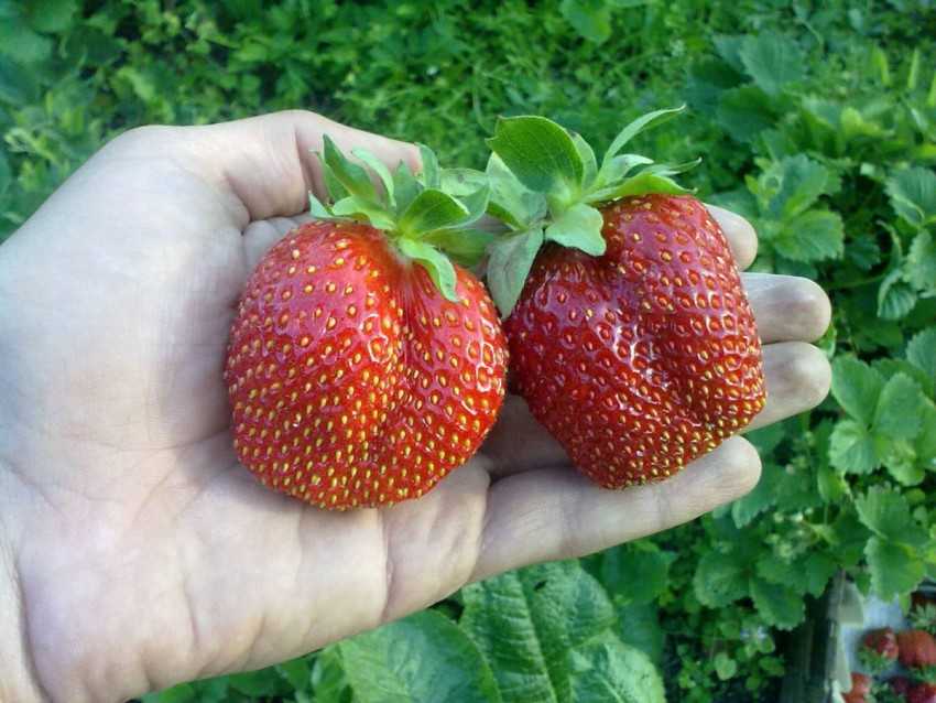 По причине большой размерности плодов клубники ее кустам для развития потребуется хорошо подготовленный и удобренный питательными добавками грунт. В качестве последних рекомендуется использовать «классическую» органику (навоз, торф и перегной) или минералы – на выбор. Лишь при соблюдении этого условия удается получить соответствующий заявленным характеристикам урожай.