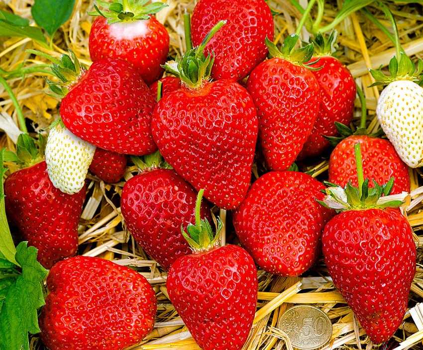 Появилась такая земляника впервые в Голландии. Многих садоводов и огородников сразу заинтересовали огромные плоды, так как вырастать одна ягода способна до 100 грамм. При этом вкус у нее потрясающий, мякоть налитая соком, а аромат немного отдает запахом ананаса. Ягоды хорошо переносят транспортировку, поэтому этот сорт часто выращивают для продажи. Земляника окрашена в ярко красный цвет, а украшают ее белые семечки.Имеют большие размеры и кусты земляники. Они вытягиваются вверх до полуметра. По этой причине следует заранее подумать о схеме посадки этого сорта. Не стоит высаживать кусты близко друг к другу. На 1 квадратному метру должно находиться 4 куста.