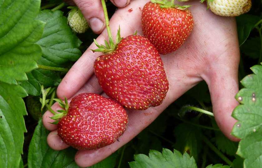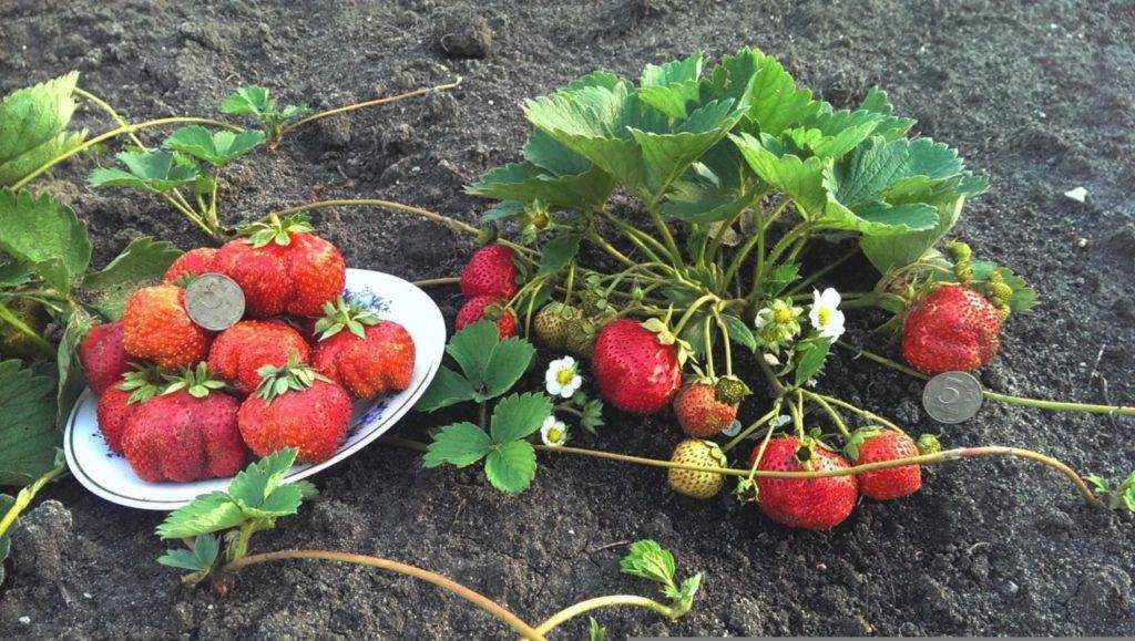 Весной цветы клубники переносят даже небольшие заморозки. Не страшны ей дождливые дни и повышенная влажность, и даже пятна на листьях не портят вкус ягоды. Крупные кусты с большими листьями и длинными черешками растут прямо и легко заметны на участке.