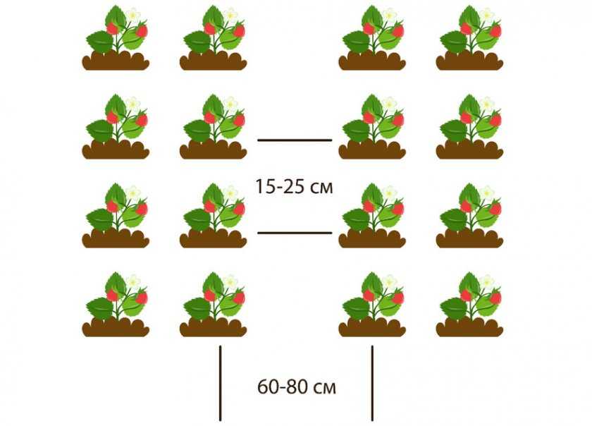 Междустрочный интервал — 25 см, междурядный — до 70 см. Корневую шейку заглублять не нужно, иначе она будет загнивать. После того как корни саженца со всех сторон присыпают землёй, их нужно чуть обжать ладонями, чтобы удалить воздушные карманы.